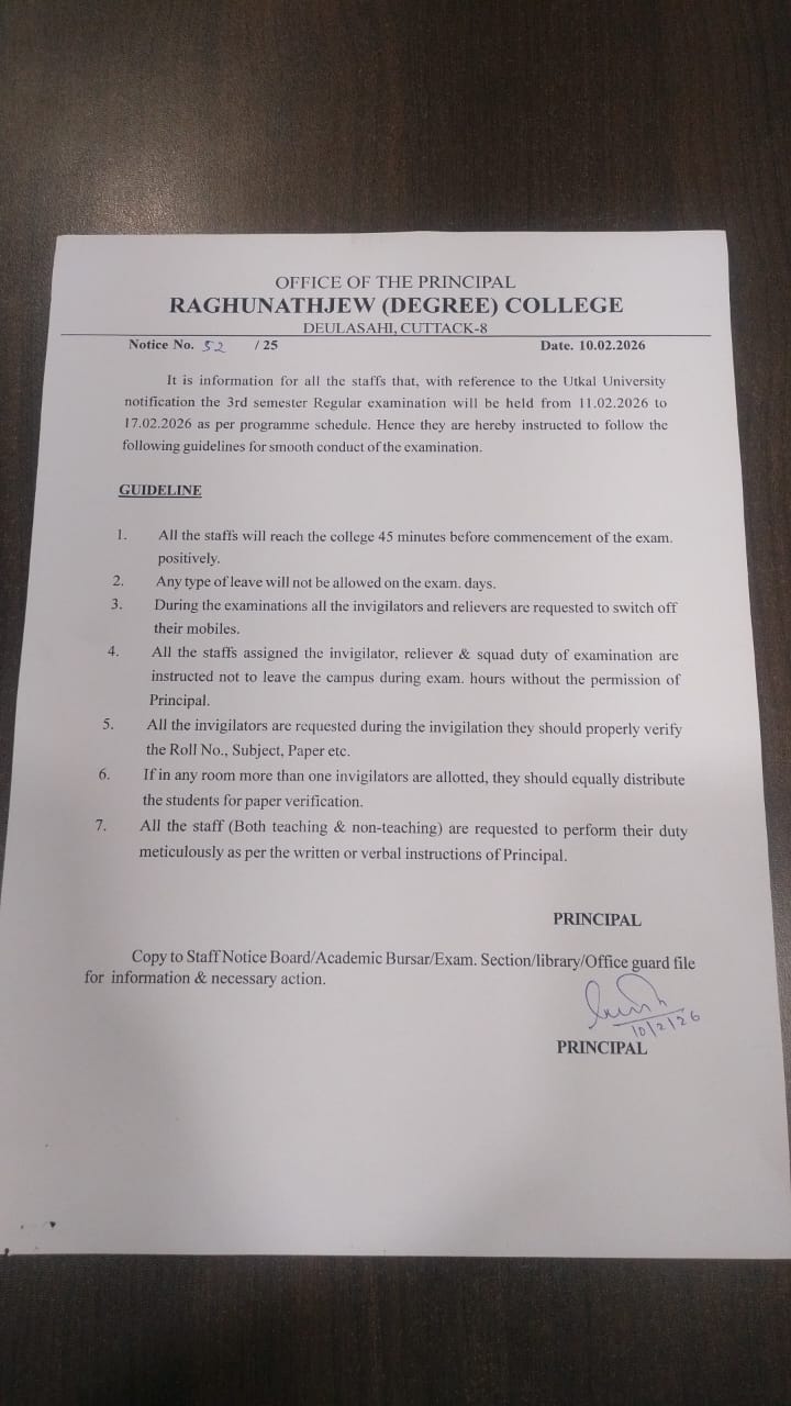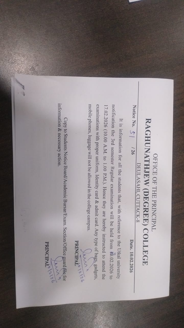 I, on behalf of Raghunathjew Degree College family welcome all the students and wish you all the best for achieving greater success and scaling new heights in the coming session.