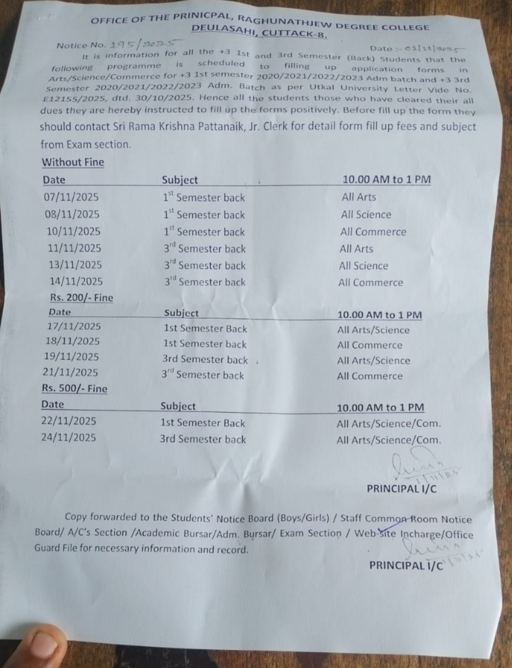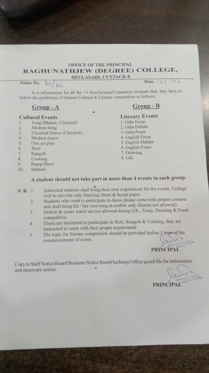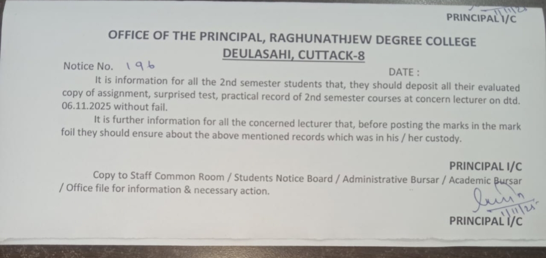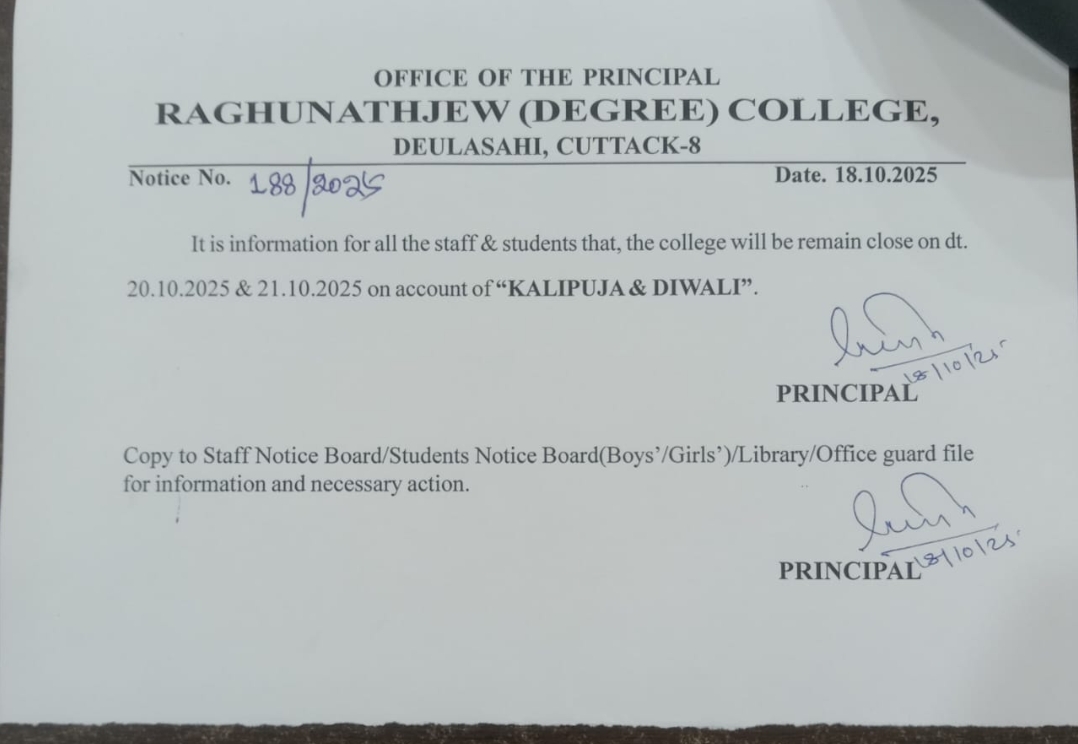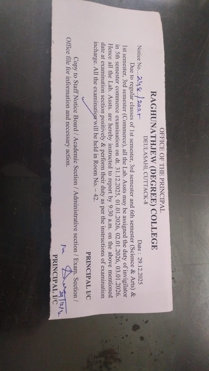 Raghunathjew Degree College,Cuttack was established in 1999 has been imparting education to the students with a vision of providing quality education to students .The College is dedicated to provide world class educational facilities to the students and offers education for college students.