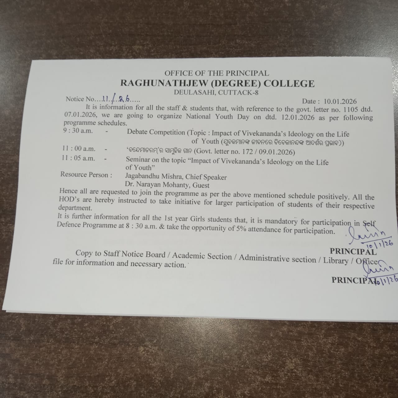 I, on behalf of Raghunathjew Degree College family welcome all the students and wish you all the best for achieving greater success and scaling new heights in the coming session.