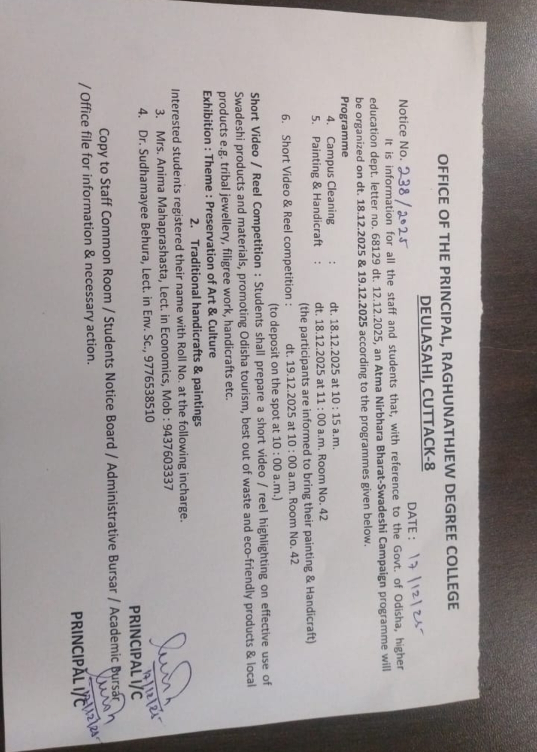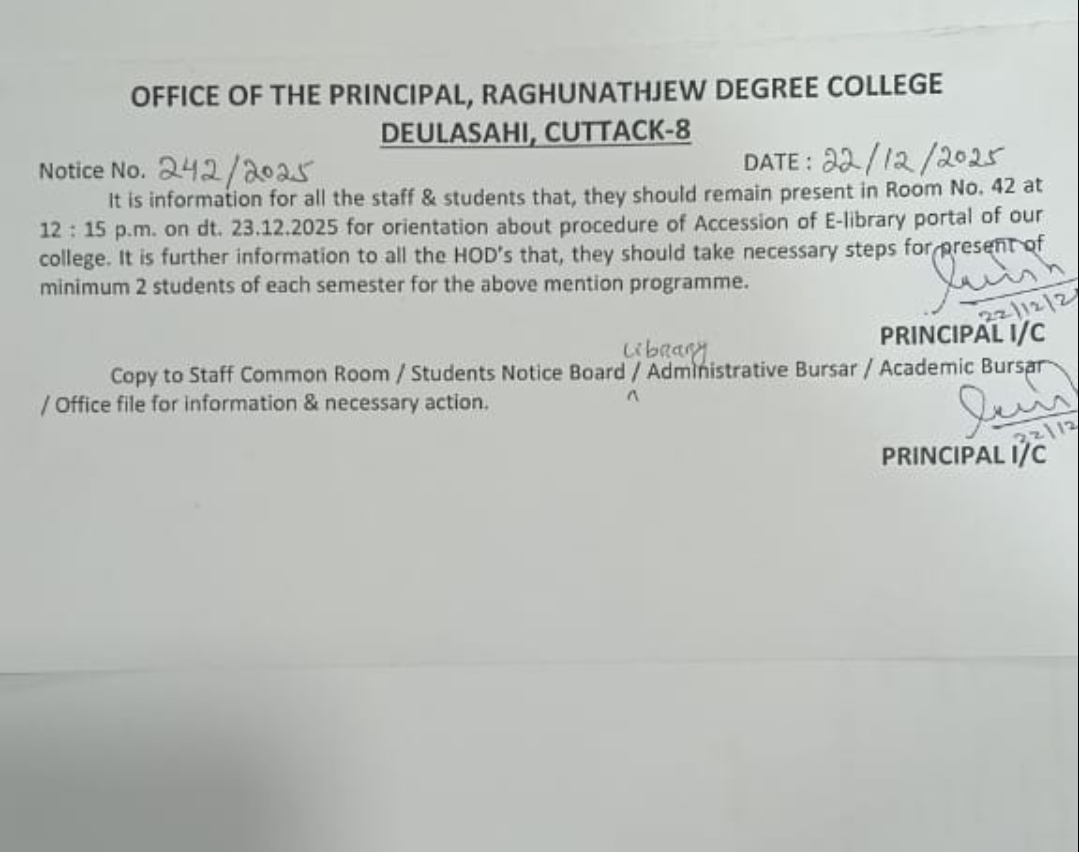 You are indeed blessed to find an opportunity to get education at one of the best college Raghunathjew Degree College, Deulasahi, Cuttack which has been nurtured and blessed by the Lord Jagannath. The college has the privilege of having a healthy, harmonious ambience and rich values which have played pivotal role in shaping the future of innumerable students. Our mission is to transform students into rational thinkers, competent workers, law abiding citizens and spiritually enlightened individuals. This is my firm belief that the rich values and traditions imbibed here would carry you to greater heights.
