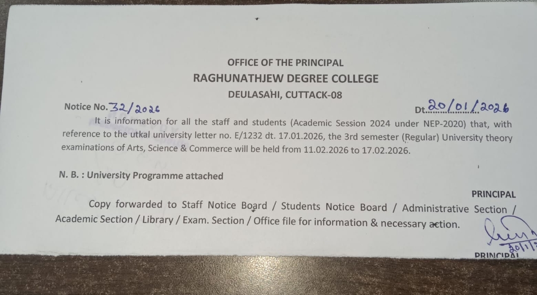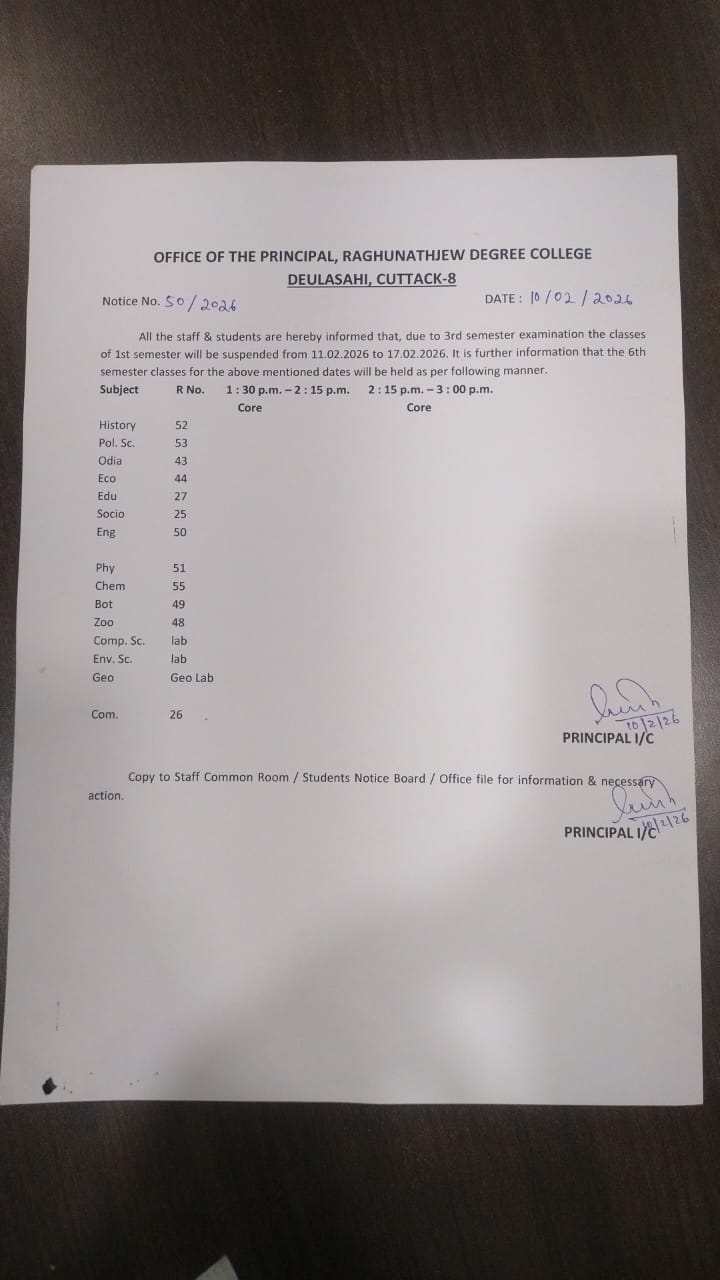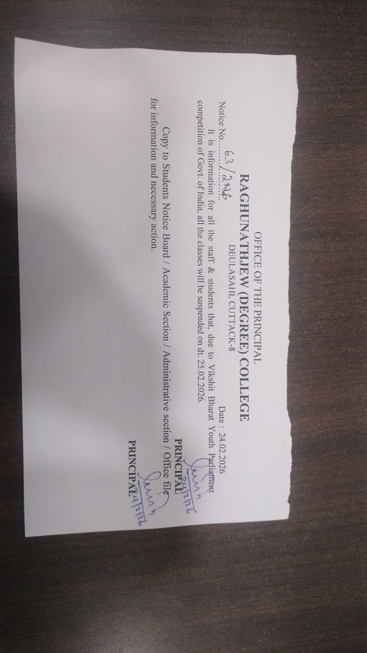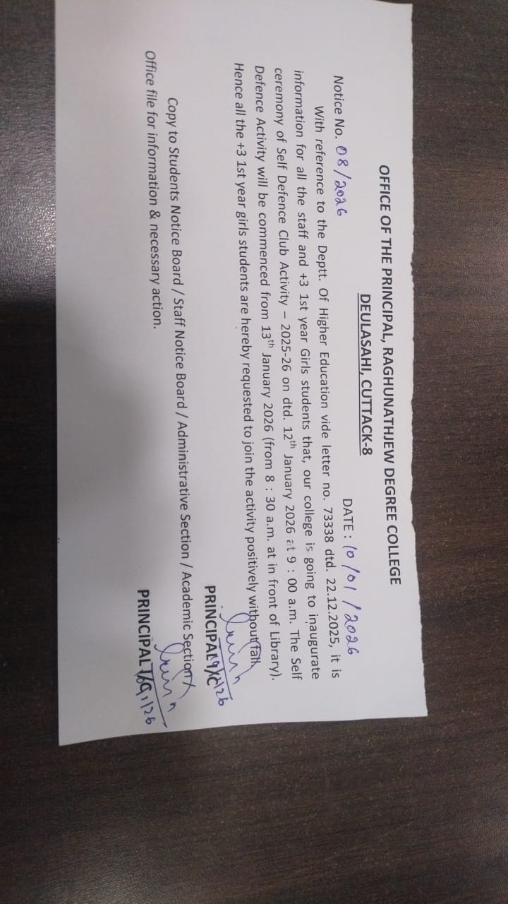 I, on behalf of Raghunathjew Degree College family welcome all the students and wish you all the best for achieving greater success and scaling new heights in the coming session.