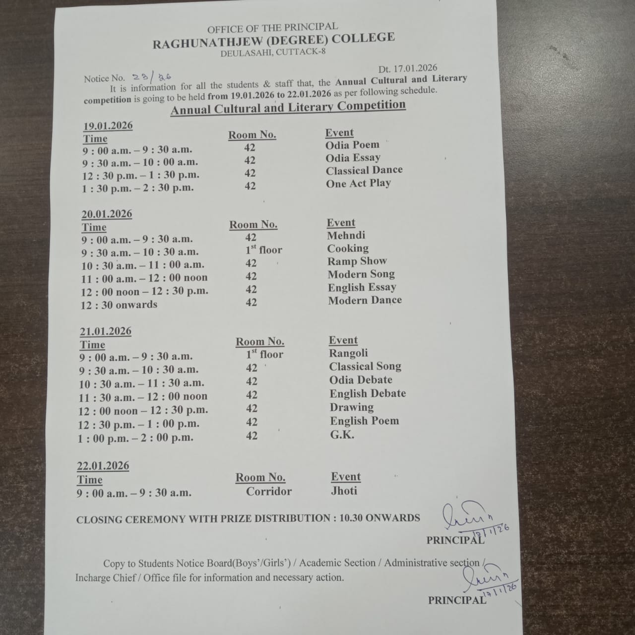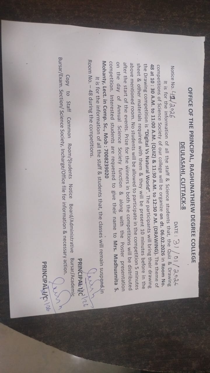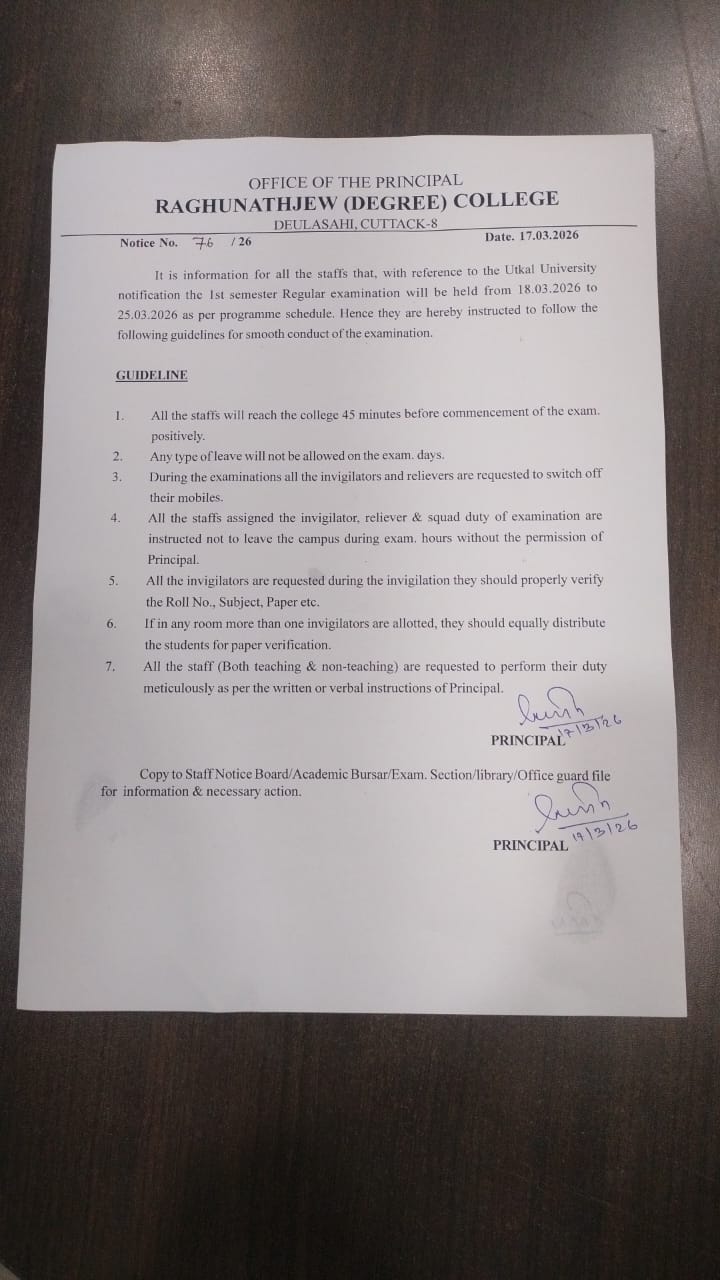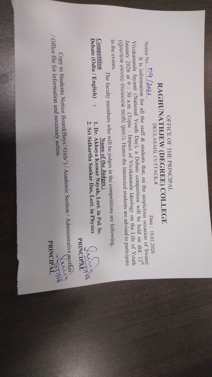 I, on behalf of Raghunathjew Degree College family welcome all the students and wish you all the best for achieving greater success and scaling new heights in the coming session.