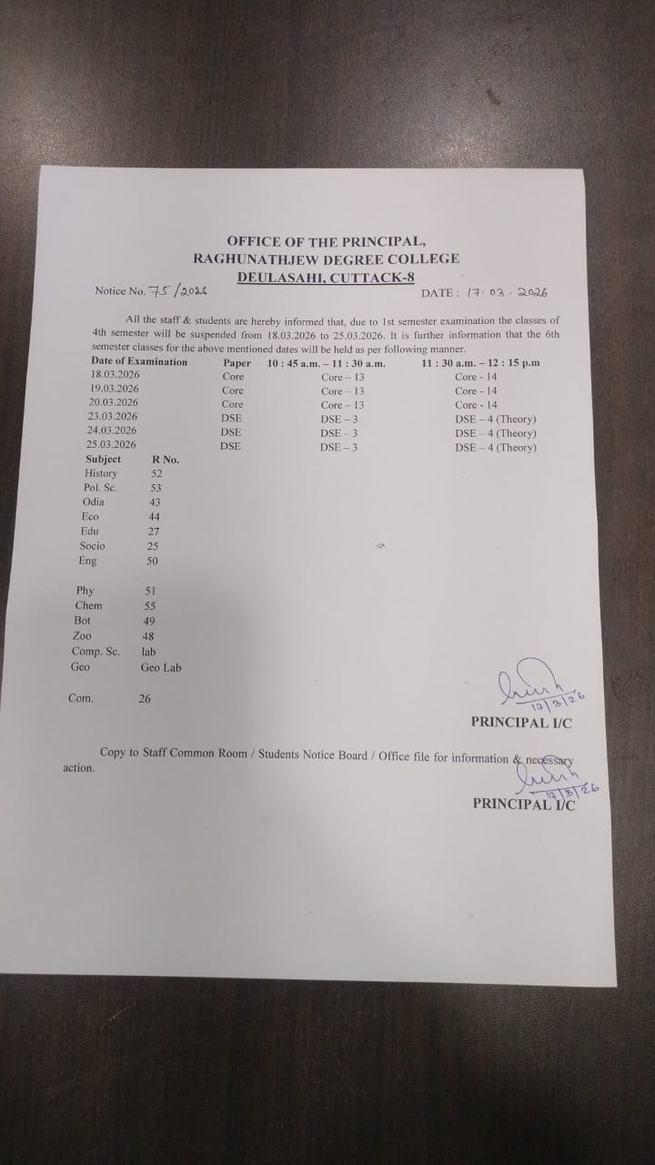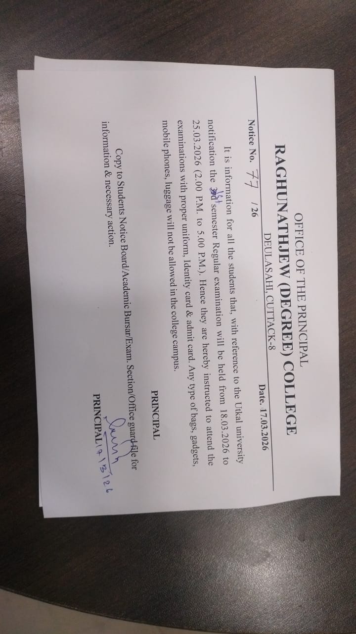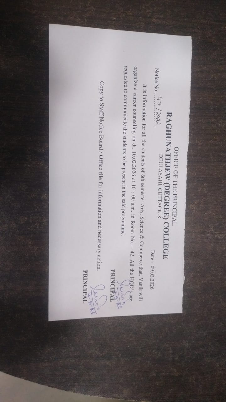 Raghunathjew Degree College,Cuttack was established in 1999 has been imparting education to the students with a vision of providing quality education to students .The College is dedicated to provide world class educational facilities to the students and offers education for college students.